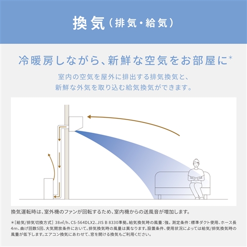●冷暖房だけでなく「換気」「加湿」もできるエアコン ・ナノイーXに合わせて給排気換気で空気をキレイに ・給水レス加湿で暖房しながらお部屋のうるおいキープ