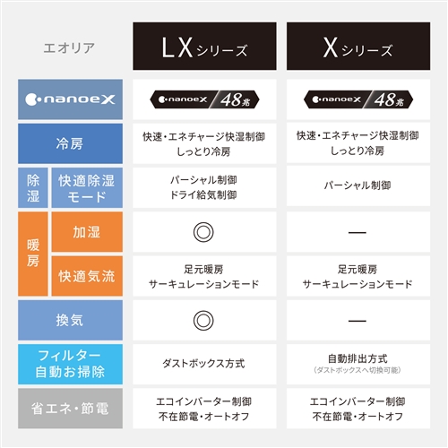●ナノイーX搭載、換気・加湿+極上な冷暖房を実現するプレミアムモデル