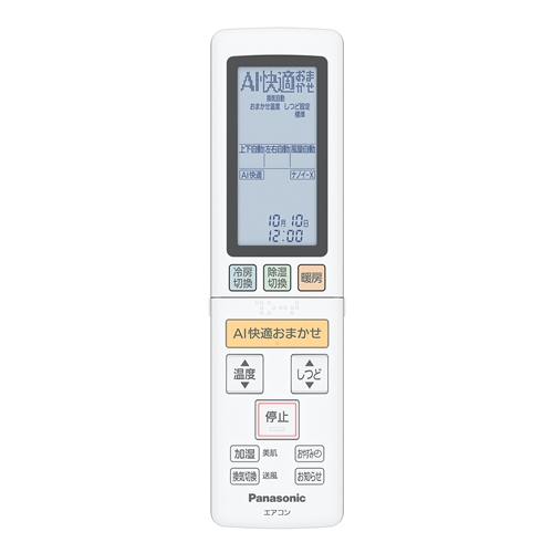 リモコン:新・AI快適おまかせ(おまかせ温度設定)、お知らせ機能(電気代等)、バックライト液晶、0.5℃刻み