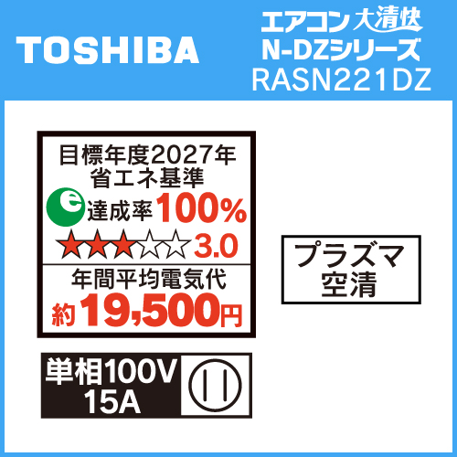 【推奨品】東芝 RAS-N221DZ(W) エアコン 大清快 N-DZシリーズ 6畳用 ホワイト RASN221DZ(W)