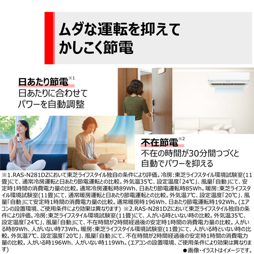 部屋に不在の時間が30分間つづくと自動でパワーを抑えデンキの無駄をカット。