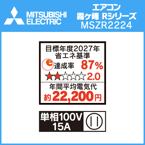 【推奨品】三菱電機 MSZ-R2224-W ルームエアコン霧ヶ峰 Rシリーズ 6畳用 ピュアホワイト MSZR2224W