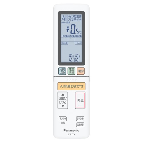 リモコン:AI快適おまかせ、お知らせ機能(電気代等)、バックライト液晶、0.5℃刻み