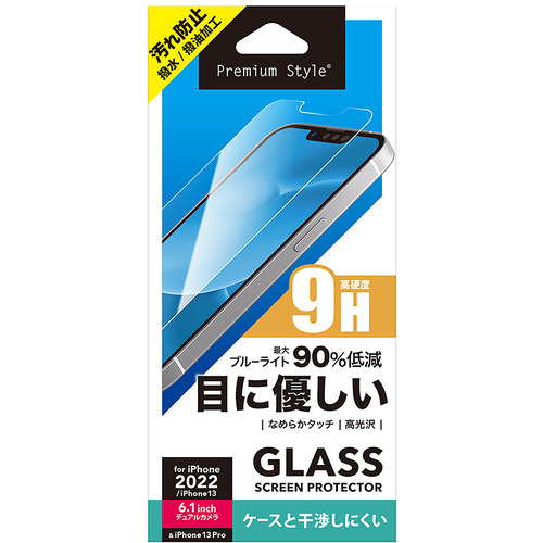 PGA PG-22KGL08BL 2022年 iPhone 14用 液晶保護ガラス Premium Style ブルーライト低減