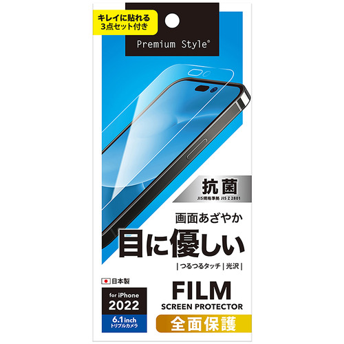 PGA PG-22QBL01 2022年 iPhone 14 Pro用 液晶全面保護フィルム Premium Style ブルーライト低減/光沢