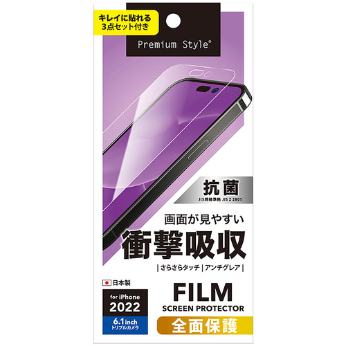 PGA PG-22QSF02 2022年 iPhone 14 Pro用 液晶全面保護フィルム Premium Style 衝撃吸収/アンチグレア