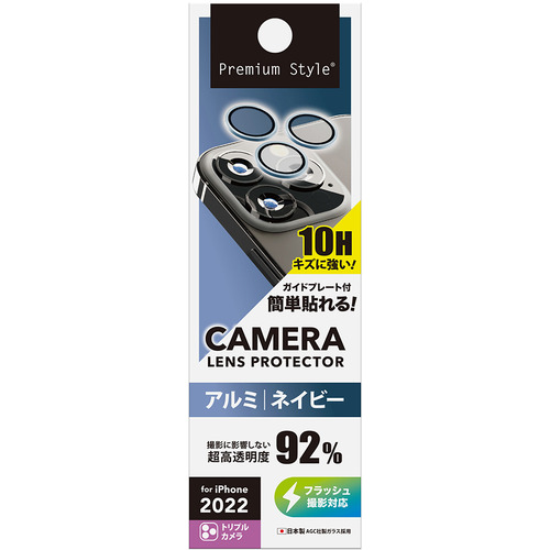 PGA PG-22SCLG08NV 2022年 iPhone トリプルカメラ用 カメラフルプロテクター Premium Style ネイビー