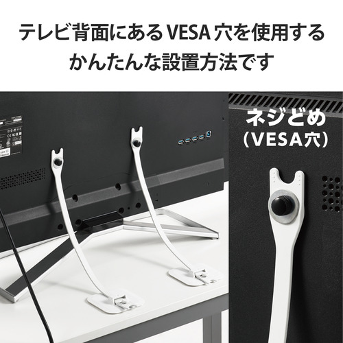●ゴムバンドは、付属のネジを使ってテレビ背面にあるVESA穴(壁掛け用取り付けネジ穴)に固定します。