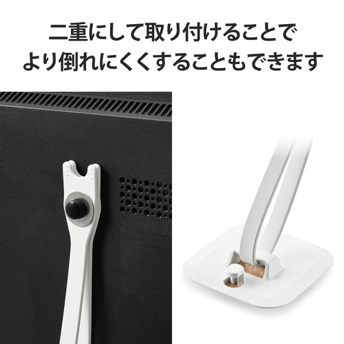 ●プレートの設置場所とテレビとの距離が近い場合は、プレートのトンネル部分を利用してゴムベルトを二重にして取り付けることで、ゴムベルトの距離を短くし、より倒れにくくすることも可能です。