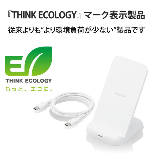 エレコム W-QS08WH ワイヤレス充電器 Qi認証 5W/7.5W/10W 卓上 スタンド おくだけ充電 ホワイト WQS08WH