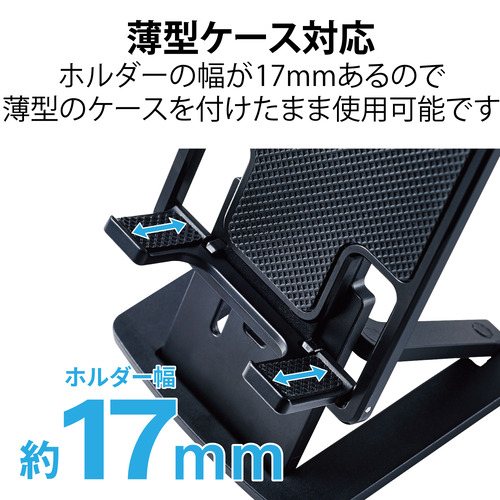 ●ホルダーの幅が17mmあるので、薄型のケースを付けたまま使用ができます。