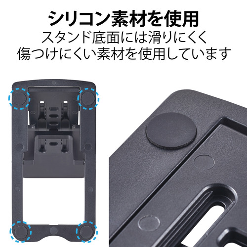 ●スタンド底面にはシリコン素材の滑り止めが付いているので、滑らずしっかりと設置できます。