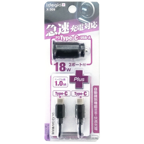 アークス X309 DC充電器 ケーブル長1.0m ブラック