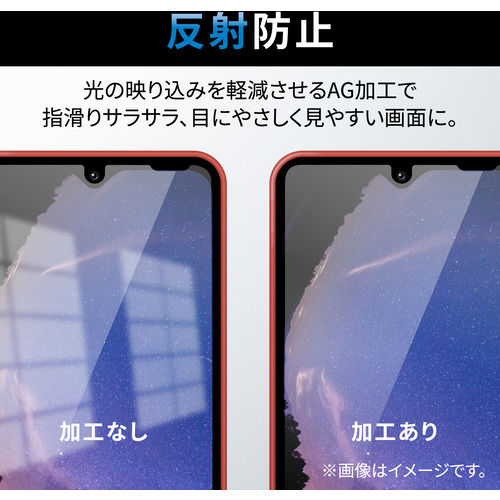 ●Galaxy A23 5G(SC-56C/SCG18)/Galaxy A22 5G/Galaxy A21 シンプル/Galaxy A21/Galaxy A20の液晶画面を傷や汚れから守る、指紋防止タイプの反射防止フィルムです。