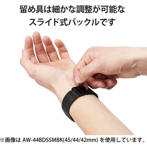 ●留め具は、手首にフィットした細かな調整ができるスライド式バックルです。