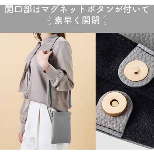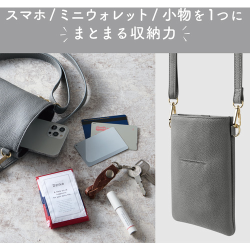 ●スマートフォンやミニウォレット、キーケースなど必要なものを1つにまとめてコンパクトに持ち出せるショルダーポーチです。