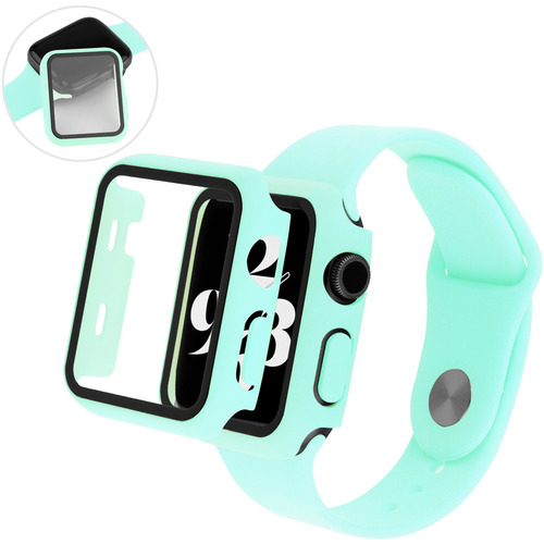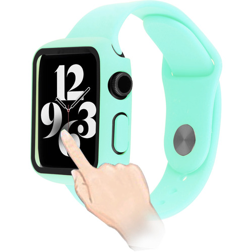 ガラスフィルムが一体となったケースです。ウォッチ本体に被せるだけの簡単装着。