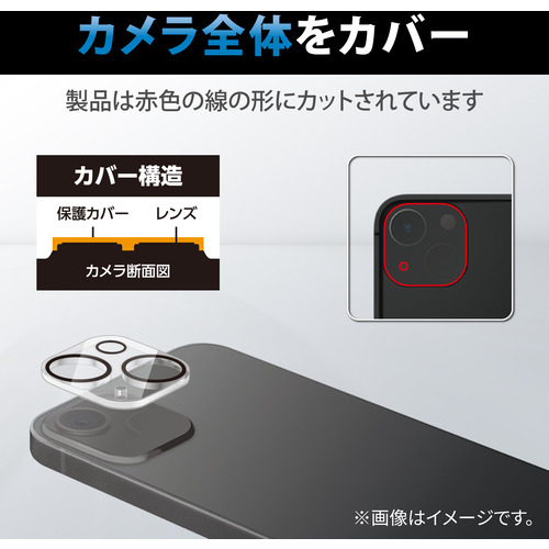 ●iPhone 14、iPhone 14 Plusのカメラレンズを傷やよごれから守る、リアルガラスを採用したカメラ保護カバーです。