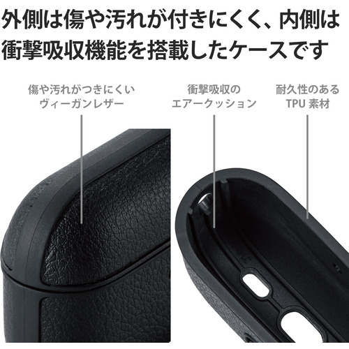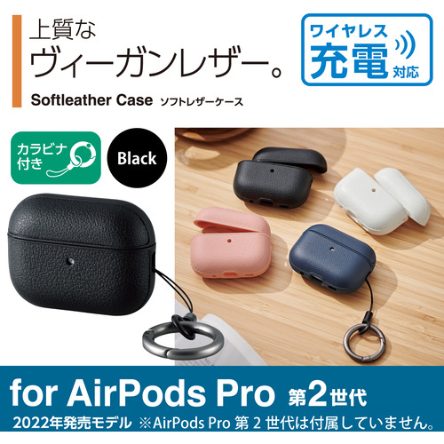 エレコム AVA-AP4PLCBK AirPods Pro (第2世代)用ソフトレザーケース ブラック AVAAP4PLCBK