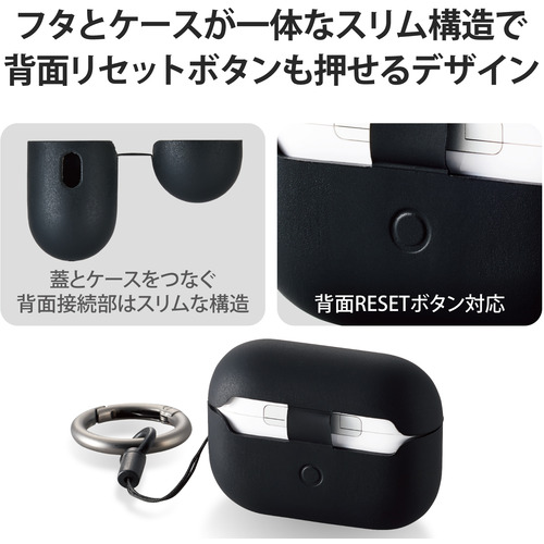 ●蓋と本体ケースをつなぐ接続部がスリムでワイヤレス充電時の効率を下げず、やわらかいシリコンでしっかり守るAirPods Pro (第2世代)用シリコンケース。