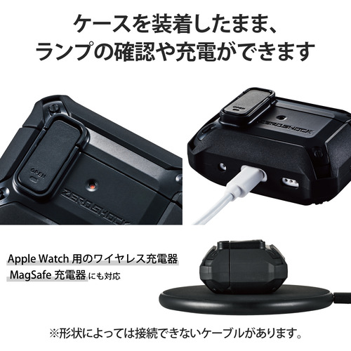 ●ケースを装着したまま、MagSafe充電器やApple Watch用のワイヤレス充電器、またはLightningケーブルでの充電が可能です。