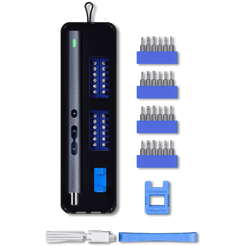 製品構成:電動ドライバー*1、マグネタイザー*1,プライバ*1、ドライバービット24種類、USB Type-Cケーブル(50cm)*1、取扱説明書(保証書付き)