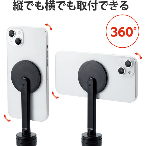 ●マグネット部分から三脚までは十分な長さがあるので、スマートフォンを縦にしても取り付けが可能です。