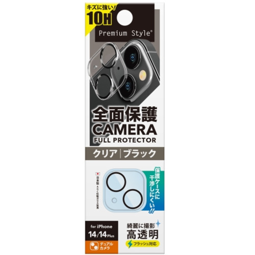 PGA PG-22RCLG09BK iPhone 14/14 Plus用 カメラフルプロテクター クリア/ブラック PG22RCLG09BK