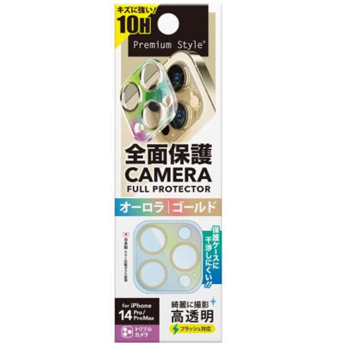PGA PG-22SCLG15GD iPhone 14 Pro/14 Pro Max用 カメラフルプロテクター オーロラ/ゴールド PG22SCLG15GD