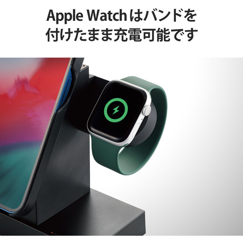 ●MagSafe対応iPhoneシリーズをマグネットで固定し7.5Wで高速充電でき、さらにApple Watch磁気充電ケーブルをはめ込むことでApple Watchを同時に充電できるワイヤレス充電器です。