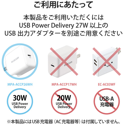 その他:本製品にはUSB出力アダプター(AC充電器等)は付属しておりません。USB Power Delivery27W以上に対応したUSB出力アダプターを別途ご用意ください。 ※USB Type-C and USB-C are trademarks of USB Implementers Forum