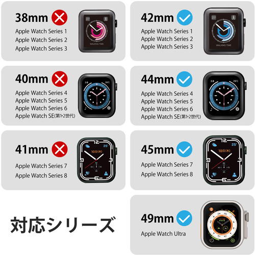 対応機種:Apple Watch Ultra [49mm]、Apple Watch Series 8、7 [45mm]、Apple Watch SE (第2世代)、SE、Series 6、5、4 [44mm]、Apple Watch Series 3、2、1 [42mm]