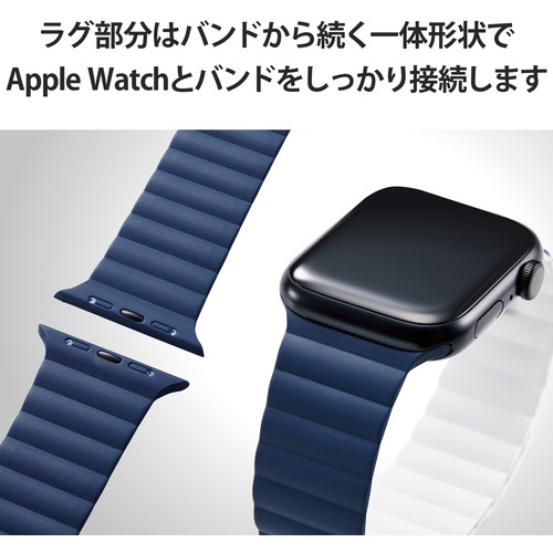 エレコム AW-45BDMAGNV Apple Watch 49/45/44/42mm/バンド/マグネット/シリコン/ネイビー×ホワイト AW45BDMAGNV