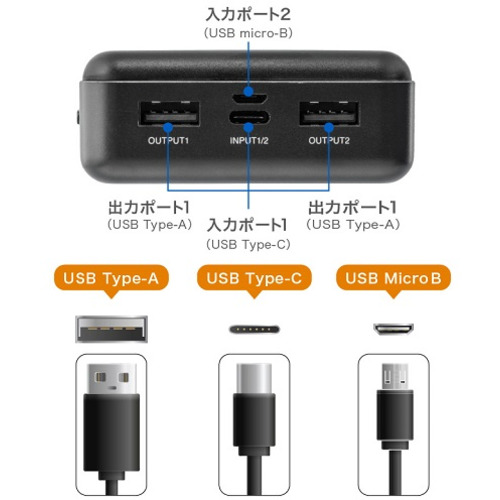 その他:付属品:USB Type-C充電ケーブル(15cm)、取扱説明書/保証書対応機器:USBポートを利用して充電できる機器 Androidスマートフォン、iPhoneシリーズ、iPad、タブレット、携帯型ゲーム機、デジタルオーディオプレーヤー、パソコン周辺機器、モバイルルーター、電子タバコなど ※対応機器の仕様や性能により、一部機器で充電できない場合があります。※機器によっては、別途充電用のケーブルが必要になる場合があります。