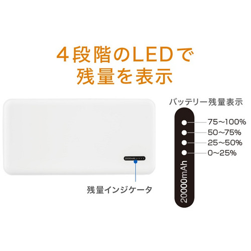 グリーンハウス GH-BTR200C-WH モバイル充電器 20000mA ホワイト GHBTR200CWH