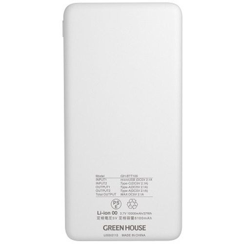 グリーンハウス GH-BTT100C-WH モバイル充電器 10000mA ホワイト GHBTT100CWH