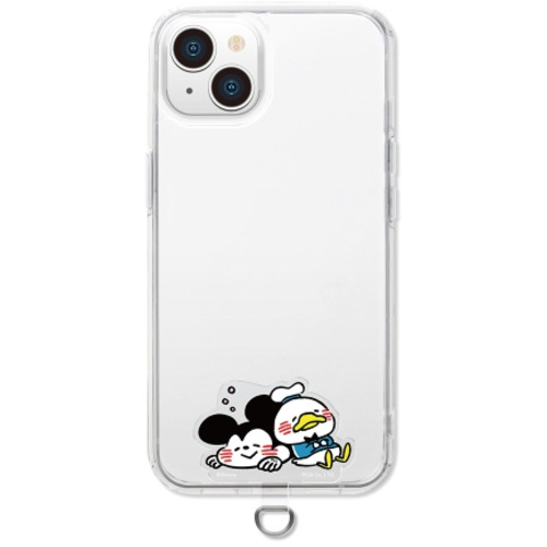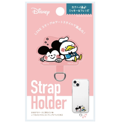ストラップホールのないケースに挟むだけでストラップが付けられる、LINEスタンプで人気の「カナヘイ画 ミッキー&フレンズ」デザインのダイカット ストラップホルダーです。