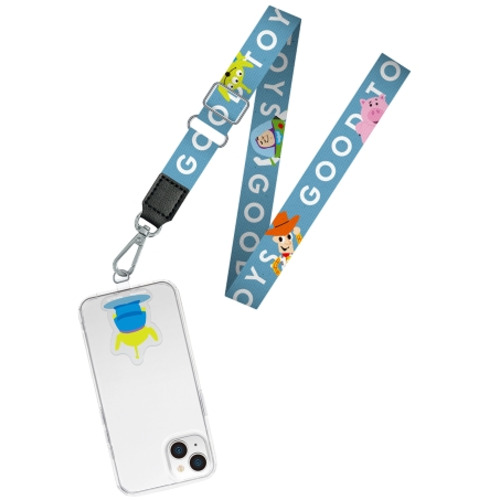 お気に入りのケースに挟むだけで快適なショルダータイプに切り替え可能な、ピクサーキャラクターデザインのストラップホルダー付 ショルダーストラップです。