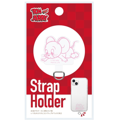 ストラップホールのないケースに挟むだけでストラップが付けられる、「トムとジェリー」デザインのダイカット ストラップホルダーです。