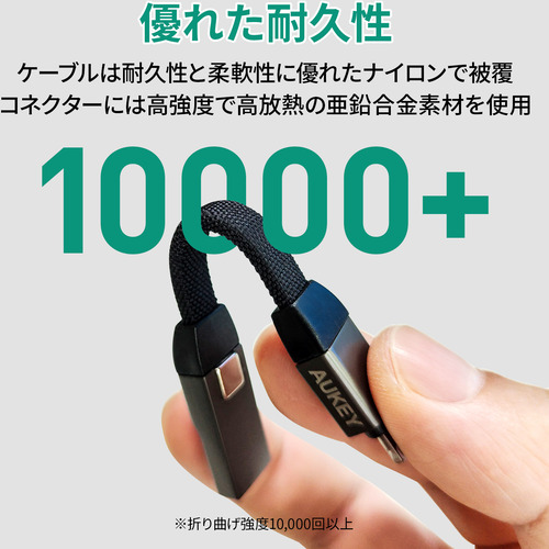 ケーブル部分は耐久性と柔軟性に優れたナイロンで被覆され、断線しにくくなっております。コネクター部分には高強度な亜鉛合金を採用し、高級感のある外観に仕上がっています。