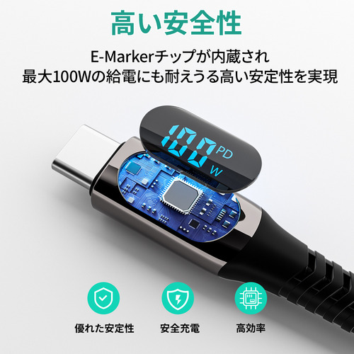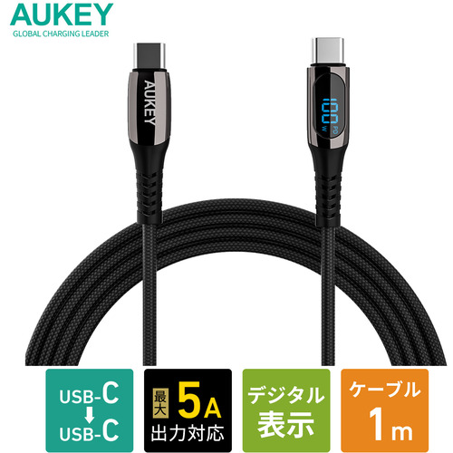 AUKEY CB-CC13-BK ケーブル Impulse series Digital Display [Type-C to Type-C] 1m ブラック CBCC13BK