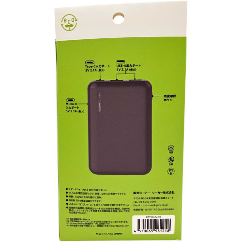 モバイルバッテリー5000mAh 薄くて軽い 2ポート 出力 USB-A 2口 5V/2.1A 入力 TYPE-C 5V/2.1A microB 5V/2.1A