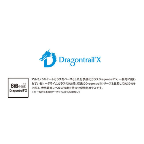 AGC社製 Dragontrail Xを使い、二次硬化処理を施す事で割れにくく硬いタフなガラスフィルムです。ULTRA HARDガラスシリーズより若干薄くしていますので、貼りやすく仕上げています。