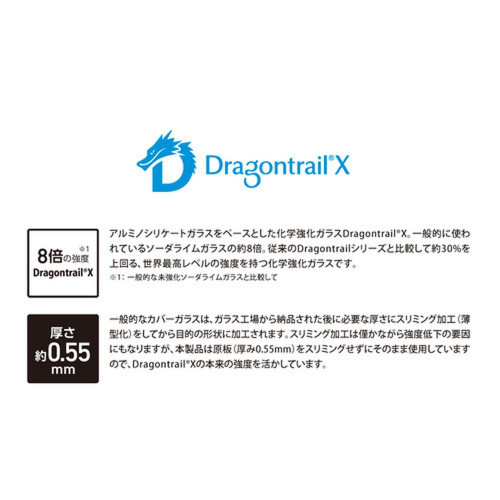 ●AGC社製 Dragontrail Xの原板を使った硬くて割れにくいウルトラハードガラスフィルム