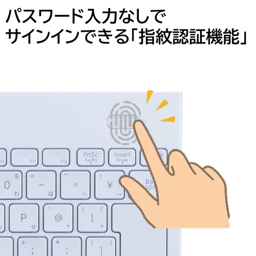 パスワード不要ですばやくサインインできる「指紋認証機能(Windows Hello対応)」を搭載。使いたいときに、いつでもすぐに作業を開始できます。また、アダプタなしで周辺機器と接続できる「豊富なインターフェイス」も搭載。本体カラーは軽やかで爽快な印象のスカイシルバーです。