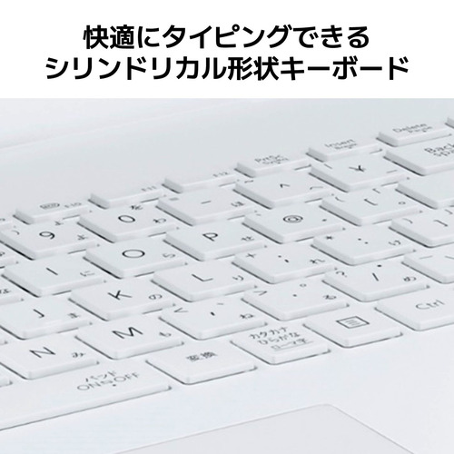 打ちやすい「こだわりのキーボード」は、適度な傾斜がつくことで入力しやすくなる「リフトアップヒンジ」や、タイピング音で周囲に迷惑をかけない静音設計を採用。本体カラーは、高級感ある輝きのパールホワイトです。