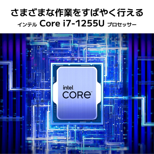 スムーズな処理を実現する「インテル Core i7 プロセッサー」を搭載。クリエイティブな作業やゲームなどをする際に優れた処理性能を発揮する「Pコア」と、OSのバックグラウンドタスクなどの処理を行う「Eコア」の2種類のコアを内蔵することで、さまざまな作業をよりスムーズに行うことができます。さらに、DVDドライブとテンキーを搭載し、使いやすさも重視したモデルです。