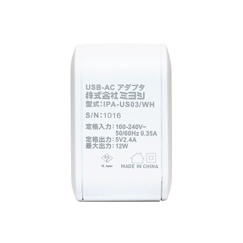 ミヨシ IPA-US03/WH 薄型 USB-ACアダプタ 2ポート 自動出力制御IC搭載 ホワイトIPAUS03/WH