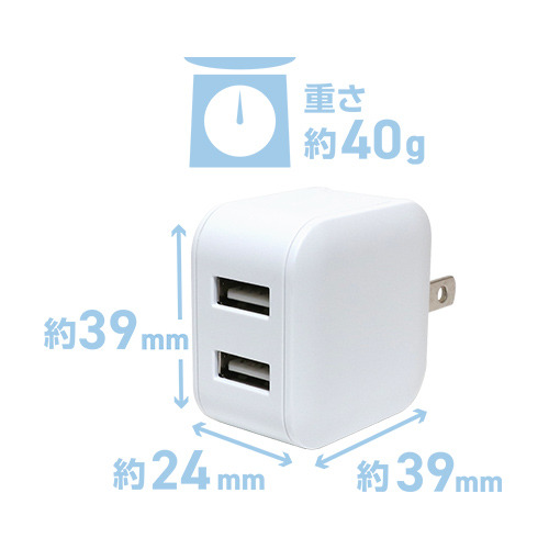 ●薄型コンパクトなUSB-ACアダプタ、2台のスマートフォンを同時充電可能