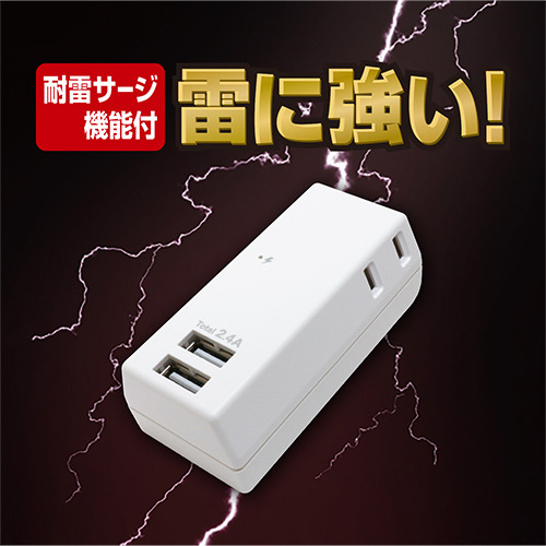 ミヨシ OAT24U2P2WH 耐雷USBタップ 2個口2ポート2.4A 固定プラグ ホワイト